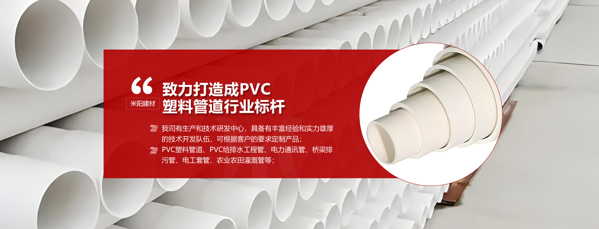 主營產品包含橋梁排水排污管,電子通信PVC管材管道,電工套管,農業排污管等;